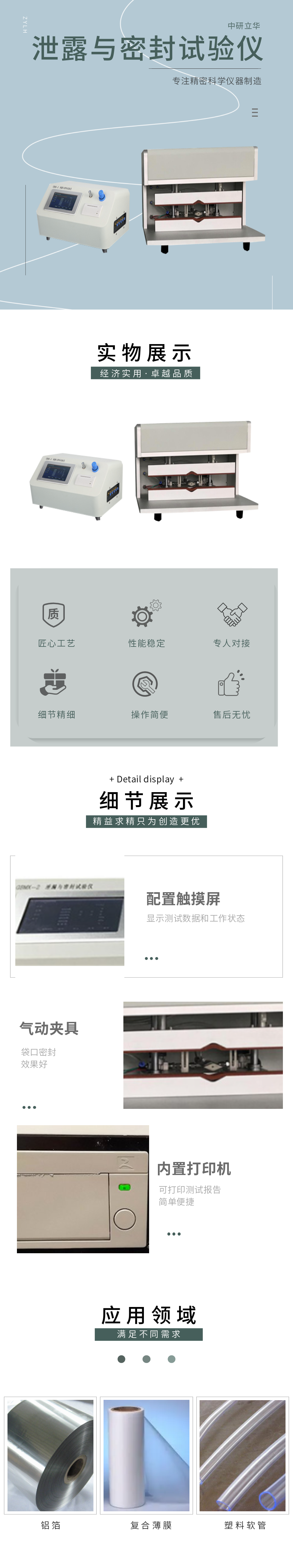 用途:密封試驗儀又可稱為密封性能測試儀、密封度檢測儀等,適用于食品、醫(yī)藥、醫(yī)療器械、日化、汽車、電子元器件、文具、農(nóng)藥、獸藥等行業(yè)的包裝袋、瓶、管、罐、盒等的泄漏密封性能測試。