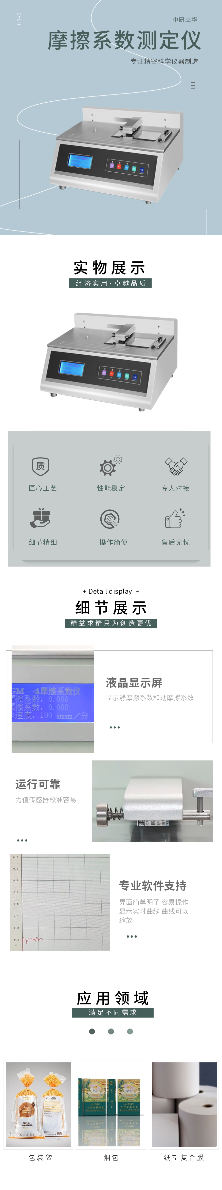 用途:摩擦系數測定儀用來測定塑料薄膜、薄片、紙張等材料在自身或其他材料表面滑動時的摩擦系數,應用于質檢、藥檢、科研、包裝、薄膜、食品、藥品、日化等行業。