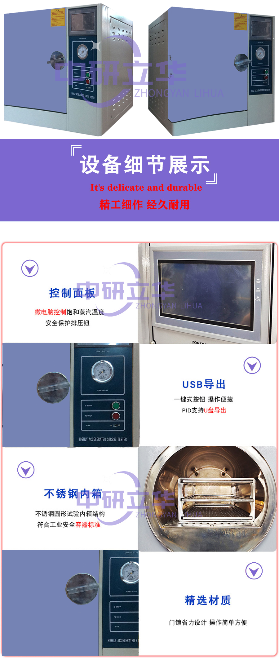4. 圓幅內襯,不銹鋼圓幅型內襯設計,可避免蒸氣潛熱直接沖擊試品
