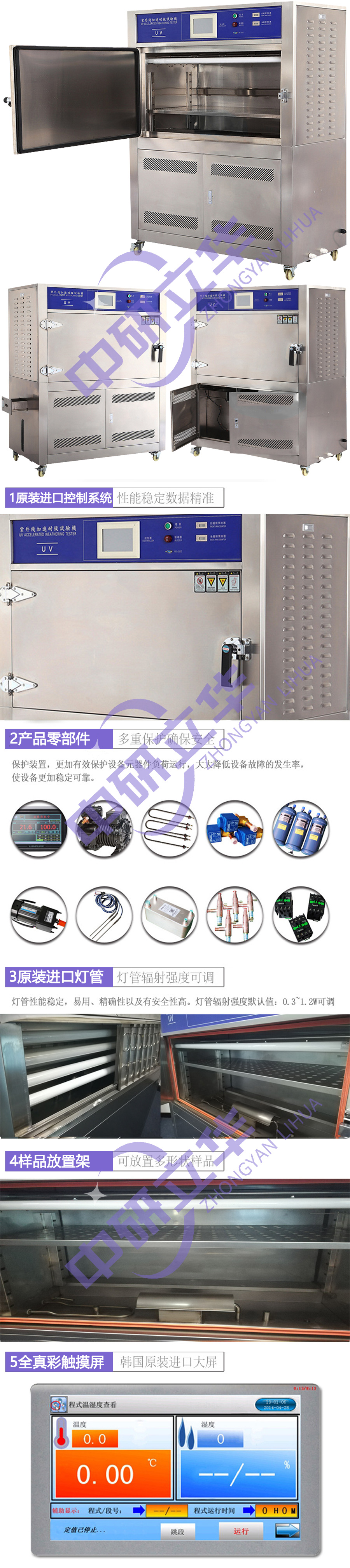 | 產(chǎn)品用途 | QUV紫外耐候老化試驗箱可以模擬由陽光、雨水和露水對材料造成的危害,UV利用熒光紫外燈模擬陽光照射的效果,利用冷凝濕氣雨水和露水。被測試材料放置于一定溫度下的光照和潮氣交替的循環(huán)程序中進行測試。UV用數(shù)天或數(shù)周的測試,即可重現(xiàn)戶外數(shù)月至數(shù)年出現(xiàn)的危害。危害類型包括:褪色、變色、失光、粉化、裂痕、渾濁、泡化、脆化、強度衰退和氧化。 UV試驗箱數(shù)據(jù)可以幫助您選擇新材料,改進現(xiàn)有材料,以及評估變化如何影響產(chǎn)品的耐久性。在材料置于戶外的變化趨勢上,UV試驗箱可以測出相關(guān)預測結(jié)果。 |